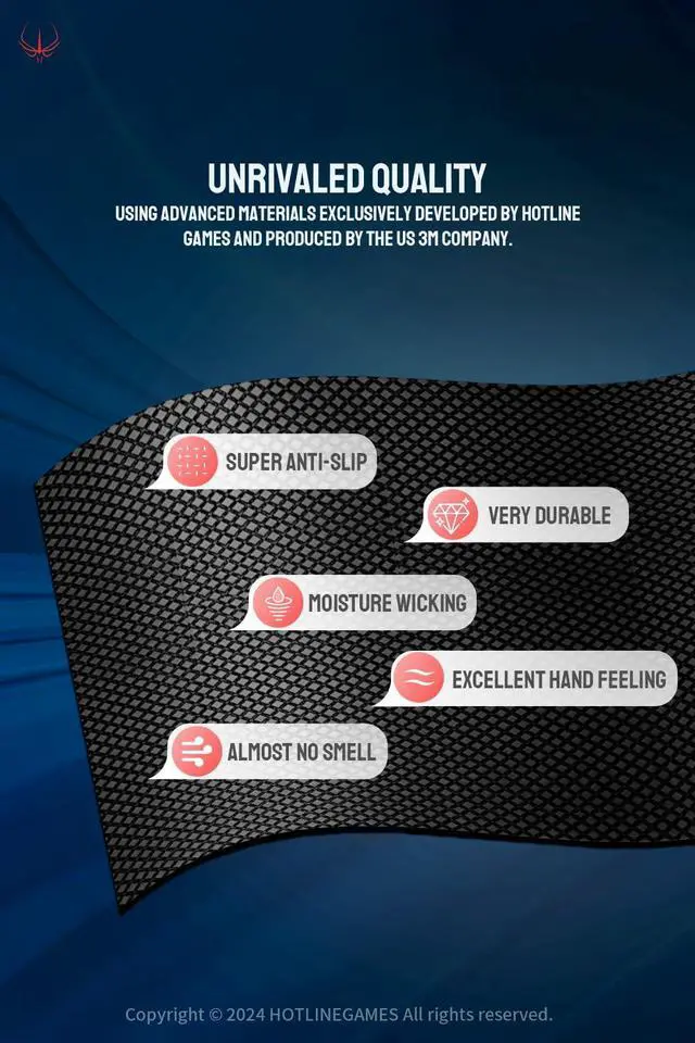 Using advanced materials exclusively developed by Hotline Games, and produced by the US 3M company. The unique diamond texture brings excellent anti-slip and sweat absorption performance, providing players with the ultimate comfort and gripping experience!