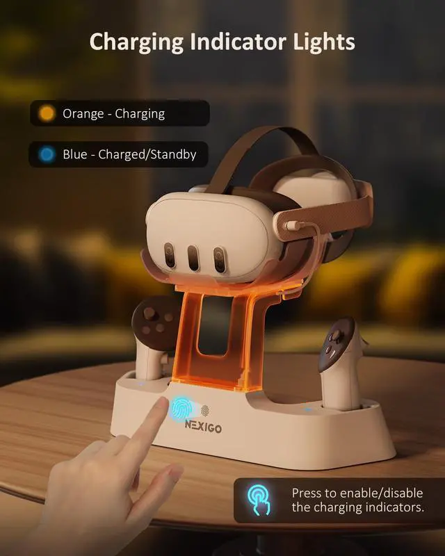 Convenient LED IndicatorsDesigned with LED charging indicators in the support column and on the left and right sides of the base to indicate the charging status of the docked headset and controllers. It's easy to tell when your accessories are charged: orange while charging, and blue when fully powered.
