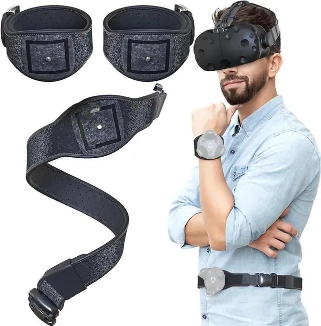 Tracker Straps for the HTC VIVE Tracker. The straps can be easily attached to Objects, Body Parts, and the HTC VIVE Tracker. (HTC VIVE Tracker Purchased Separately)