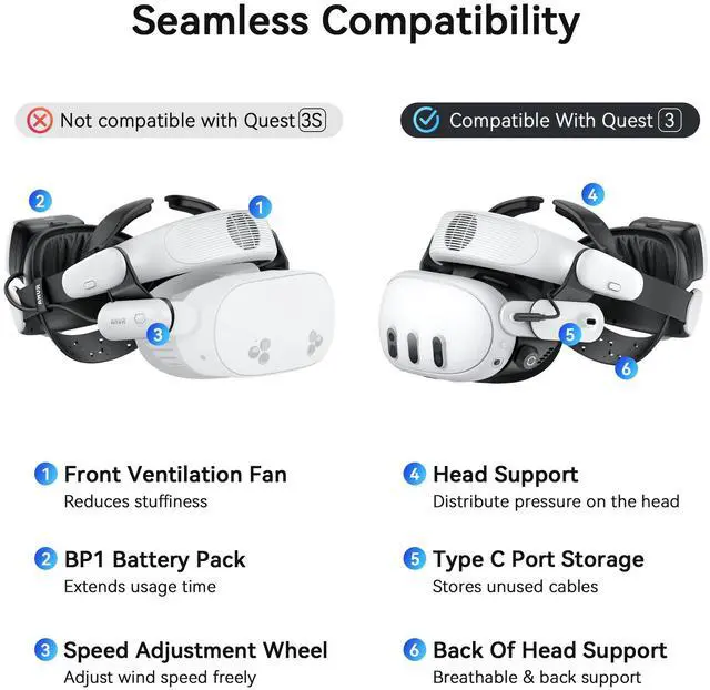 Experience the next level of immersion with our innovative Meta Quest 3 accessories. The unique "Wind Tunnel" group design ensures maximum airflow, keeping your forehead cool and effectively preventing lens fogging during intense gaming. For those seeking total freedom, the top crossbar foam is detachable, allowing you to feel a refreshing breeze across the top of your head.