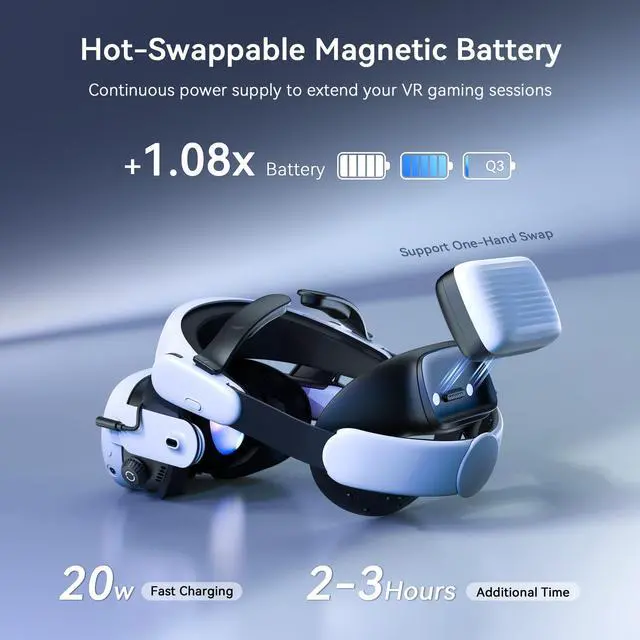 Designed for everyone, the strap adjusts seamlessly from 47cm to 70cm (18.5 - 27.5 inches). The meta quest 3 battery strap employs a full magnetic cushion design, making replacements and cleaning (water washable) faster and easier than ever.