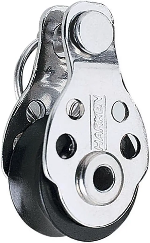 16mm Forkhead Block The 16 mm is Harken s smallest block. It is perfect for small synthetic control lines found on high-tech dinghies. The patented bearing system uses stainless steel balls in a captive grooved race and has a 250 lb (113 kg) maximum working load.