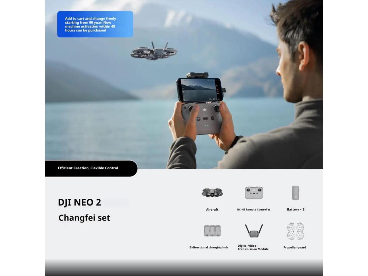 DJI Neo 2 Fly More Combo With RC-N3 Remote Controller, Stable Transmission With Digital Transceiver, 4K Drone for Beginners, 3 Batteries
