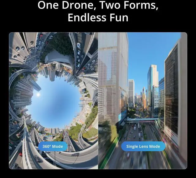 Experience two distinct creative styles. Capture everything in immersive 360°, or switch to Single Lens mode for classic, high-quality 4K/60fps aerial filming.