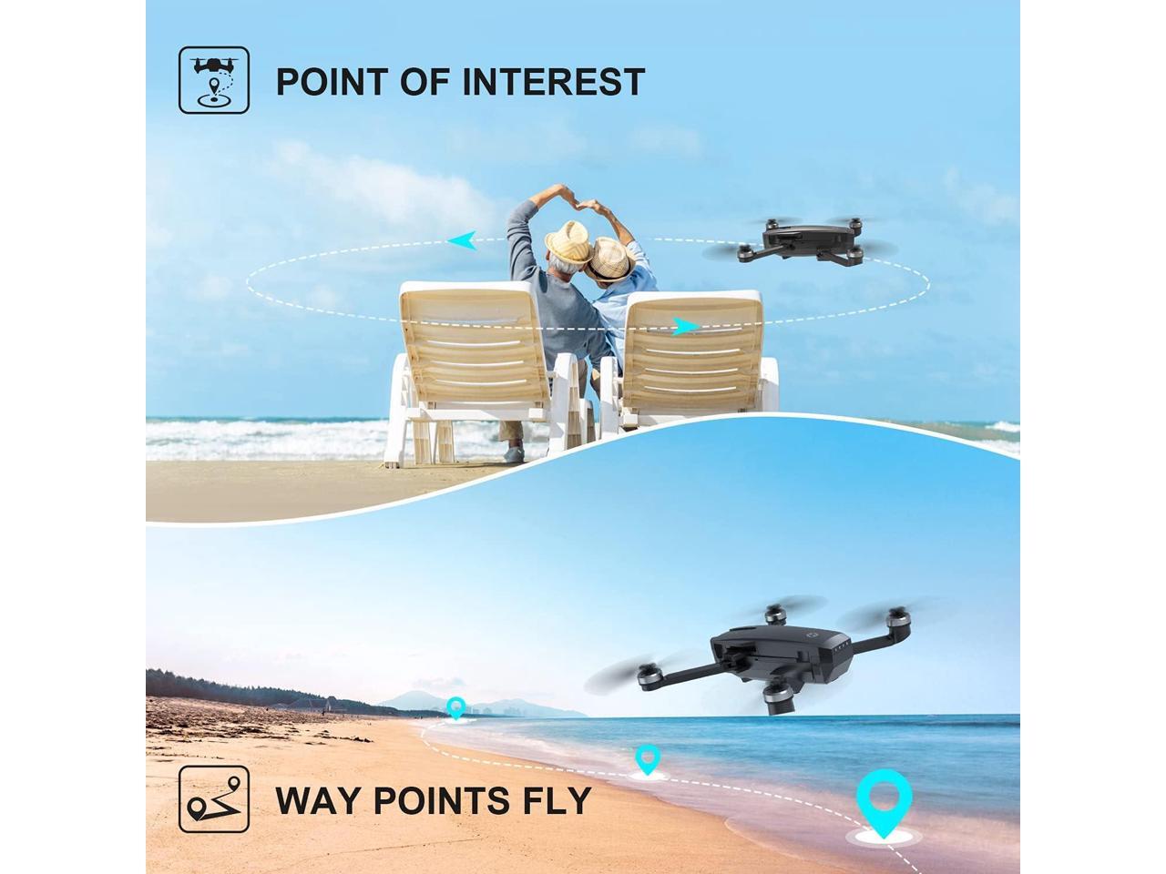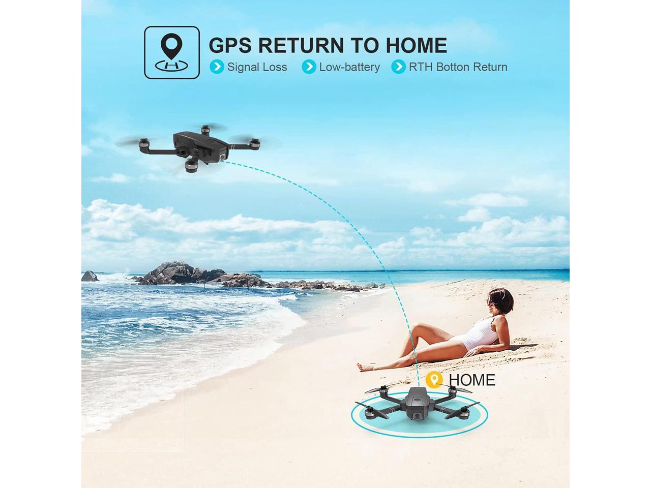 - GPS Assisted Intelligent Flight: Never lose the drone. It returns automatically whenever battery is low, signal is lost or you press one key return. Also, it is so smart to fly at your will, following you automatically, flying along a path you set, or fly around a point in circles. You may focus on your photography and creation.
