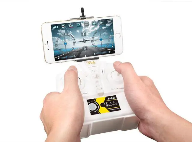 - Remote controlled quadcopter drone with 2.4Ghz wireless transmitter and Wi-Fi control. Can be controlled with the included remote control or through your phone.