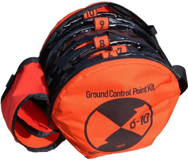 Be prepared for your photogrammetry surveying tasks with the Ground Control Point Kit, a comprehensive set of five 3-foot diameter pads. Each pad is designed to spring into shape, boasting a self-weighted design that ensures stability and precision during use. Individually numbered from 6 to 10, these pads offer a systematic approach to your surveying needs. The high-visibility orange and black right-angle pattern on each Ground Control Point (GCP) ensures easy location, even in challenging field conditions. Crafted for durability, each GCP features a galvanized steel perimeter cable and is made from robust 600 denier polyester material, promising longevity and resistance to wear and tear.