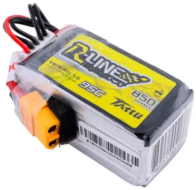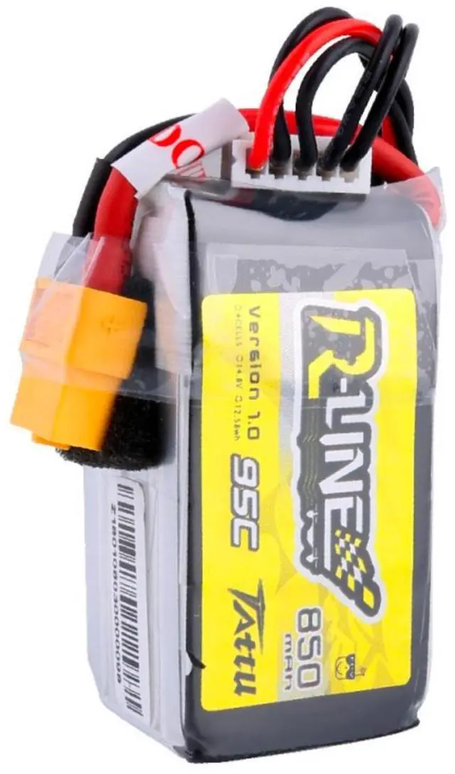 Whether you're a professional racer or an RC enthusiast, the Tattu R-Line 850mAh 14.8V 95C 4S1P Lipo Battery Pack with XT60 plug is a reliable choice, designed to meet the diverse needs of different FPV racing competitions. Experience the difference of a battery pack that's built to last and designed to perform.