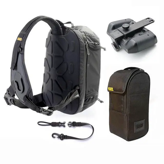 HYKER Sling bag for drone users comes with our FlytDeck Drone-Controller Bracket and quick-release tether strap. Insert case with dividers also included.For years, camera bag manufacturers have been trying to figure out how to help you access your gear quickly so you never miss a shot. From gimmicks like side doors and rotating bags to car parts and other hardware, they've all tried different solutions. The Cotton Carrier HYKER is the ultimate answer. Don't keep your gear in the bag - carry it on the outside, so it's always ready to go!Introducing the New Hyker Sling bag from Cotton Carrier