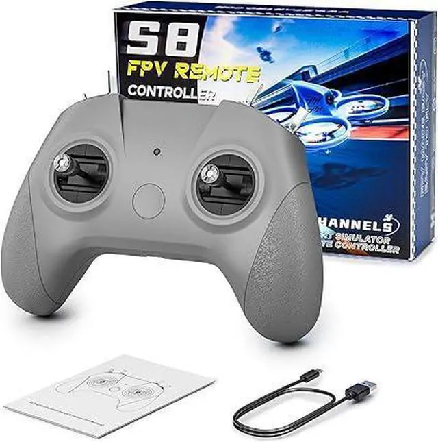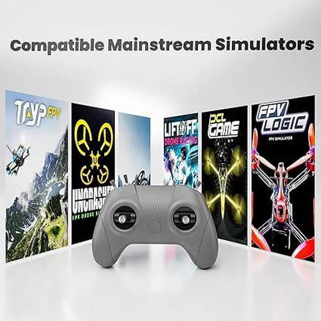 Professional FPV Simulator ControllerEngineered for serious FPV drone flight training, this 8-channel remote control features high-sensitivity hall joysticks with ultra-low 0.8ms delay for pinpoint precision. Rest easy knowing you won't face delays, power interruptions, or malfunctions even during the most challenging maneuvers. Mimicking a real FPV drone controller, it boasts a simple key layout with consistent positions and a unique non-centering throttle design to build natural muscle memory. Its realistic feel, smooth body, and comfortable grip make transitioning between virtual and real-world flights seamless