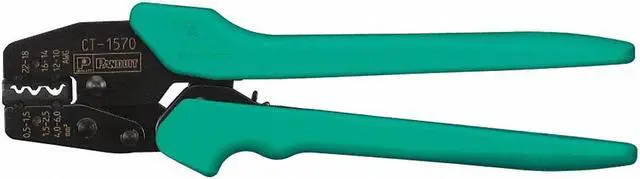 Primary Crimping Application Electrical Wire and Cable, Crimper, Uninsulated, Capacity 22 to 10 AWG, Overall Length 10 3/4 in, For Use With Panduit Non-Insulated Terminals and Disconnects, Panduit Non-Insulated Splices and Compression Lugs, Cuts No, Strips No, Max. Crimping Force Not Rated, Adjustable Automatic, Handle Type Cushion Grip, Replacement Die Code None, Features Trapezoid Profile Designed for Panduit Ferrules, Multi-Position Locator, Standards UL, CSA, Includes Die
