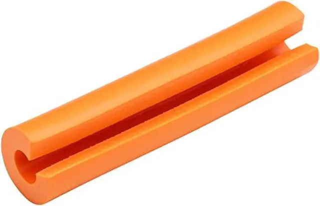 The cable identification sleeve in orange is for 3mm simplex cable with labels S100X150YAJ (laser/inkjet), S100X150VAC (LS8E handheld printer), and S100X150VA1Y or S100X150VATY (thermal transfer printer). It is 1" long and made of flexible PVC. It comes in 100-piece packages.