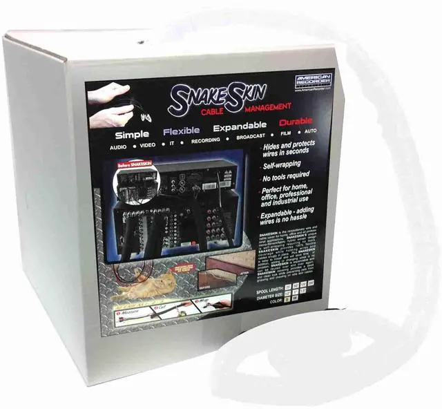 The job is not dressed properly until the SNAKESKIN is on! Best of all, SNAKESKIN will not "chew up" your fingers like standard plastic split loom. SNAKESKIN makes a great animal deterrent, preventing pets from playing with or chewing on wires and electrical cords, protecting both wires and pets from electrical shock. Available in 3/8", 1/2", 1" & 1.5" diameter in single use and bulk packs for large installations and industrial applications. Use all audio, video, recording, broadcast, film, IT, computer and automotive applications.