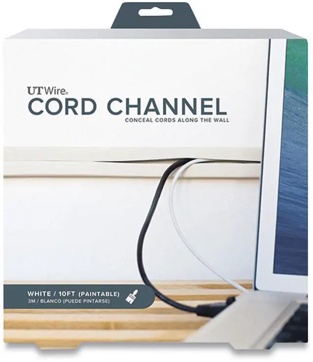 UT Wire Cord Channel is a quick and easy fix to conceal loose cords along the wall, baseboard and desks. This raceway is made with flexible rubber material that is easy to cut to desire length with scissors. Paintable to match with decor. Total: Two 5-feet rolls (10 ft. total length).