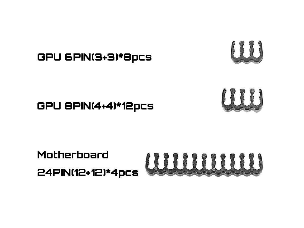 24 Pieces Set = 24-pin x 4, 8-pin x 12, 6-pin x 8 Cable Comb for 3 mm Cable Gesleeved Up To 3.4 mm/0.13inch) black