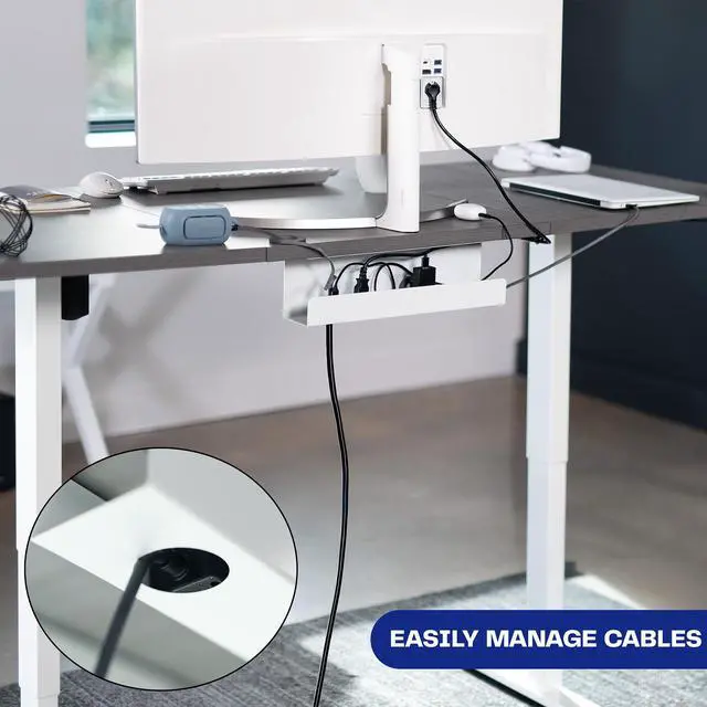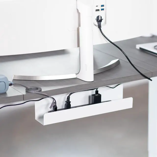 Tame those messy cables in your office space with White Under Desk Cable Management Tray (DESK-AC06-1CW) from VIVO! Not only are hanging cables unsightly, but they pose a tripping hazard and expose you to unnecessary clutter. Its time for that to change! By mounting this sturdy cable tray under your desk, you can get your cords off of the floor, strategically routed, and out of sight. In addition to cables, this versatile product also holds powerstrips and small adapters. Mounting screws and instructions are provided for fast and easy installation, so you can get your new cable holder mounted and remove clutter in no time!