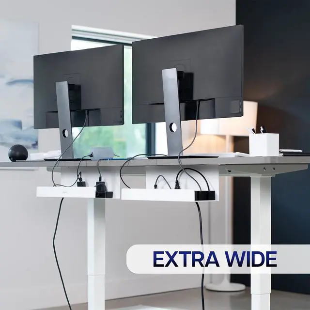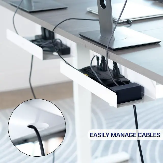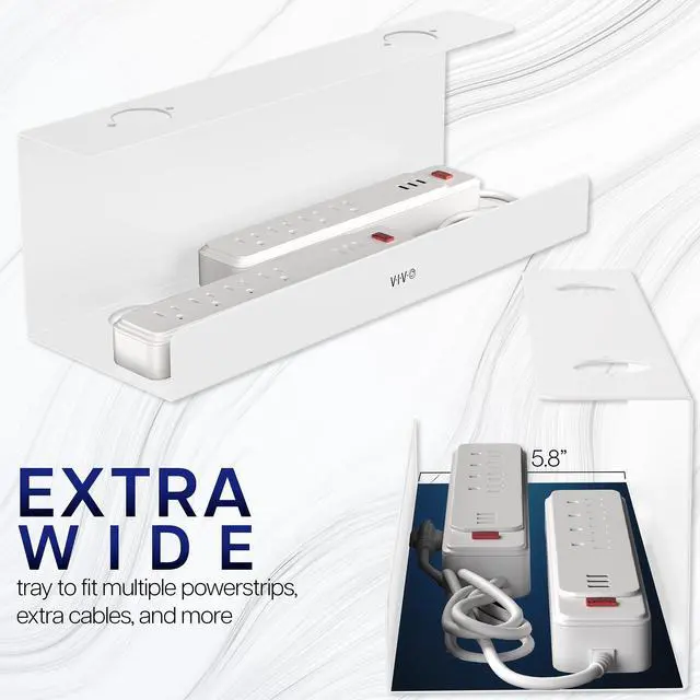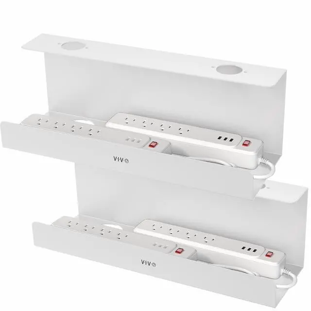 Tame those messy cables with the White Extra Deep Under Desk Cable Management Trays - 2 Pack (DESK-AC16-2CW) from VIVO! By mounting these sturdy cable holders under your desk, you can get cords off the floor, strategically routed, and out of sight. In addition to cables, this versatile product set holds power strips and small adapters in a safe, out-of-the-way location. Mounting screws and instructions are provided for fast and easy installation, so you can get your new cable holders mounted and remove clutter in no time!