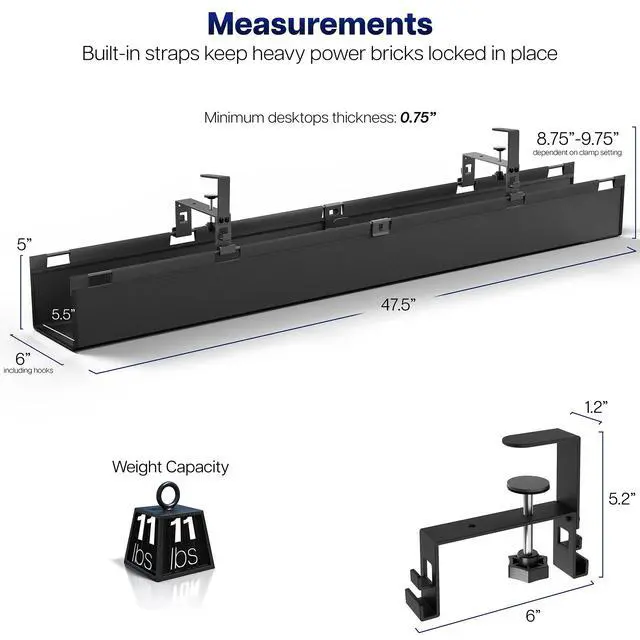 Cable Tray Dimensions: 47.2" x 9.1" x 6.1" (not including clamps)