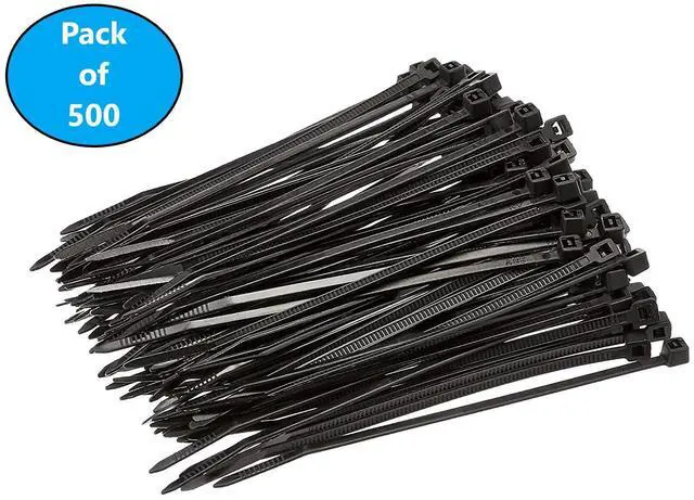 Micro Connectors 8 in. Cable Zip Tie (40-lbs) Multi-Purpose Self-Locking Black (500-Pack) (MSC-204B-5P)