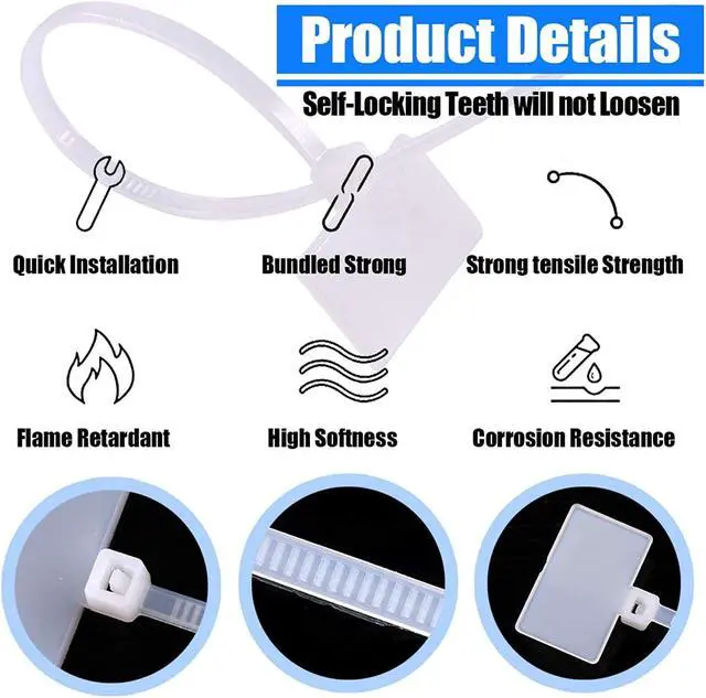 -?? Well-PACKED PACKAGE? A pack of 200pcs white nylon cable ties, free with 288pcs white cable labels, and 3 colors marker pens, 491 items in total, all put in a transparent strong opp bag and each item would keep in a separate plastic bag to avoid scratches during shipping. We must ensure it comes to you in good condition. Plus, all materials are eco-friendly and we promote environmental protection.