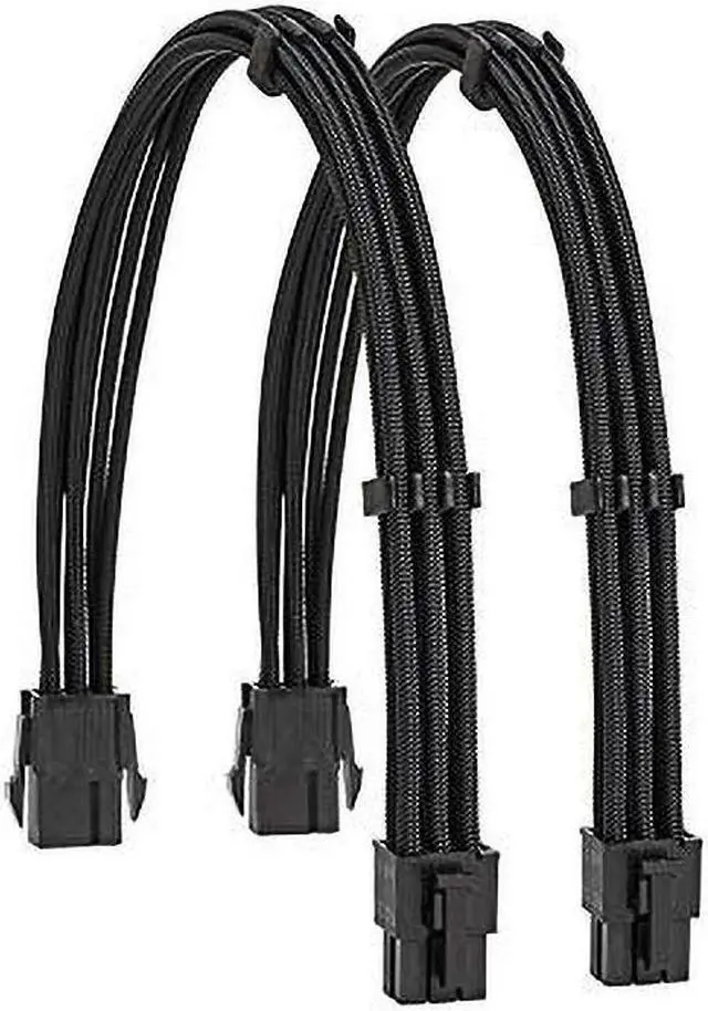 FormulaMod Sleeve Extension Power Supply Cable Kit 18AWG 2x PCI-E 6-Pin with Cable Combs for PSU to Motherboard/GPU (2x Black PCI6) Black
