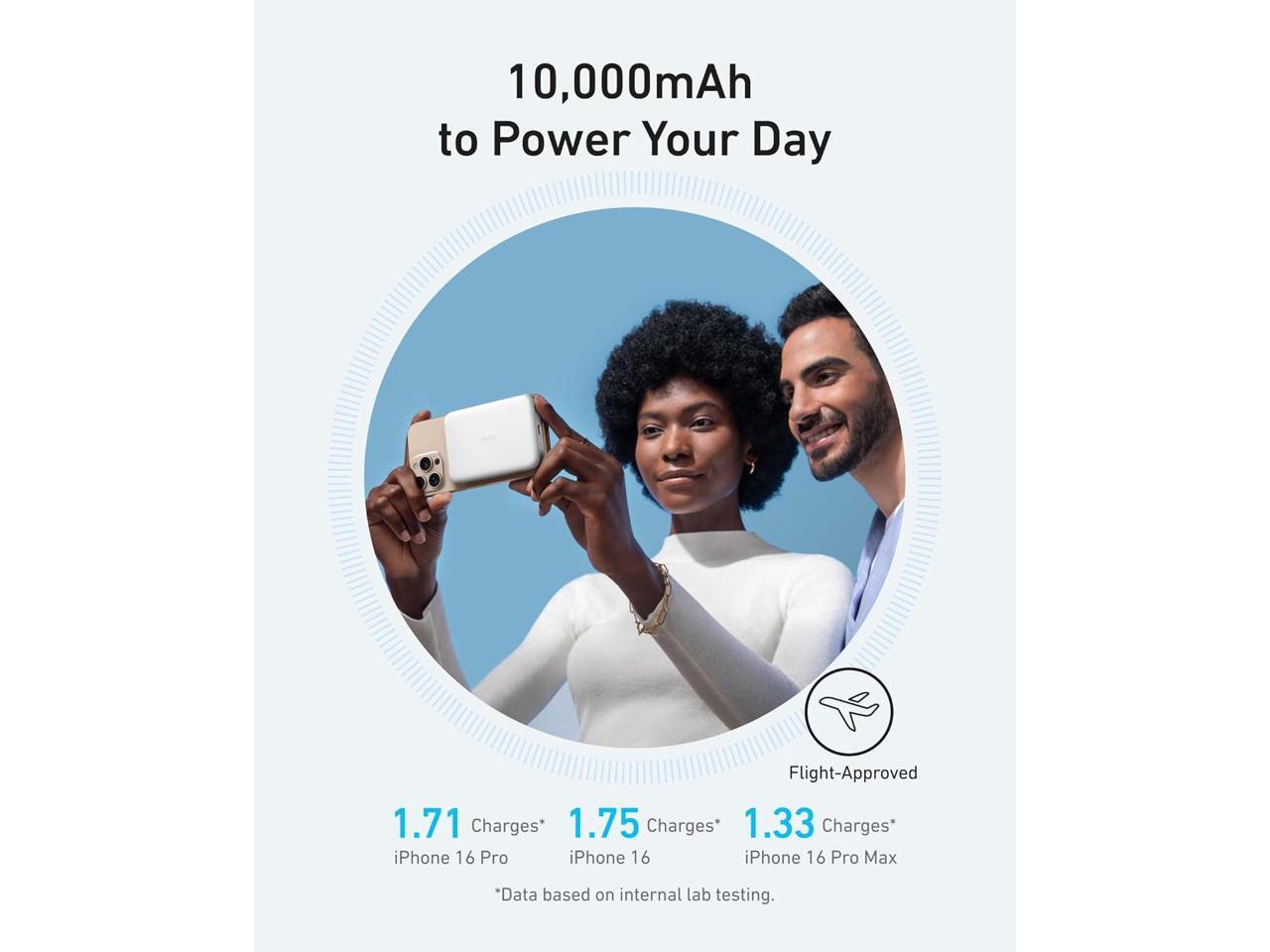 Ultra-Slim and Portable: At just 0.58 × 2.78 × 4.09 inches, this 10,000mAh Anker power bank delivers exceptional portability without compromising on power capacity. It can offer up to 1.8 charges for an iPhone 15 Pro.