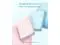The power bank features five indicator lights: four white lights that display the battery level and one blue light for wireless charging.