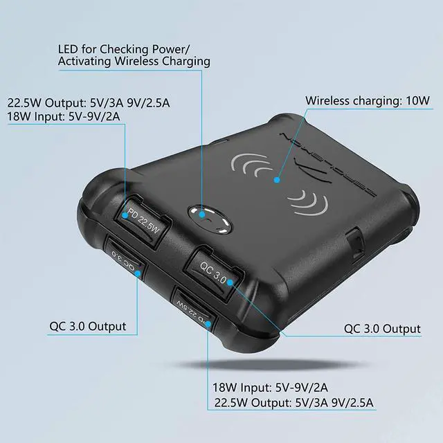 [Upgraded#2] 4 USB Outputs for Fast Charging: 2 USB C 22.5W PD outputs charge iPhone 12 from 0 to 60% in about 30 minutes; The 2 QC 3.0 outputs offer more compatibilities to your devices; An ideal backup for a low-battery emergency.