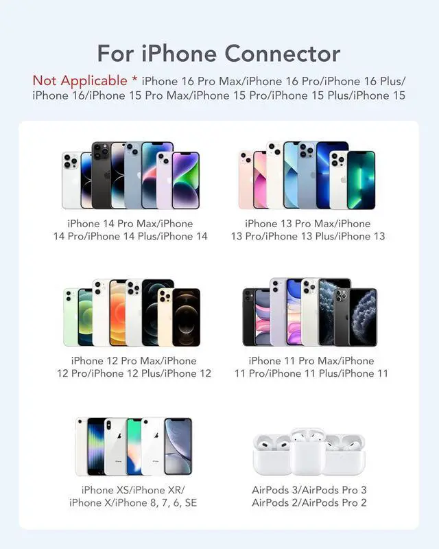 )5000mAh Capacity: 5 000mAh battery capacity provides 0.65 charges for iPhone 13 Pro Max 0.79 charges for iPhone 13 0.9 charges for iPhone 12 0.8 Charges for iPhone 11 0.9 charges for iPhone XR 6 charges for AirPods (2nd Generation).