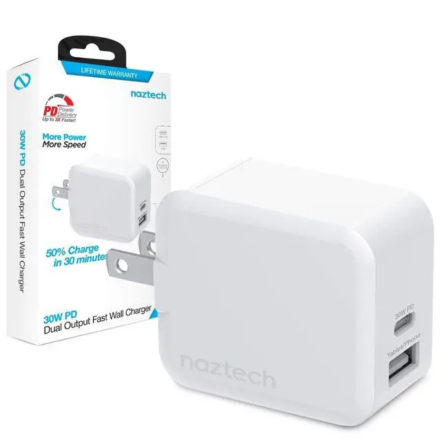No more waiting, experience the full speed of Power Delivery Technology. This power solution pairs the latest high-speed charging technology in dual outputs: 30W USB-C Power Delivery + 12W USB, for maximum compatibility with all your mobile devices. With over 6X the power of standard chargers, it is perfect for power-hungry devices and can fast charge the latest iPhone and the new Samsung Galaxy from 0 to 50% in just 30 minutes! Now you can enjoy the latest in high-speed technology and always arrive fully charged!