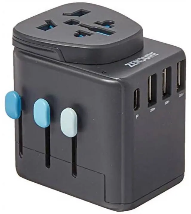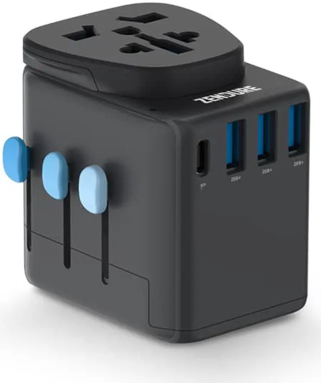 Charge your smartphone, tablet, laptop, camera or other mobile devices in almost any country worldwide. Zendure Passport Pro Travel Adapter features four built-in USB ports and an adaptable AC outlet which is compatible in more than 200 countries and regions. You can charge five devices at a time. Among the four USB ports, one is USB-C PD with a maximum output of 18W for quick charging. The built-in one-push resetting fuse, new grounding system and baby-proof safety mechanism ensure safe operation. Thanks to the compact, lightweight design, you can pack it into your bag or luggage without adding bulk and weighing you down.