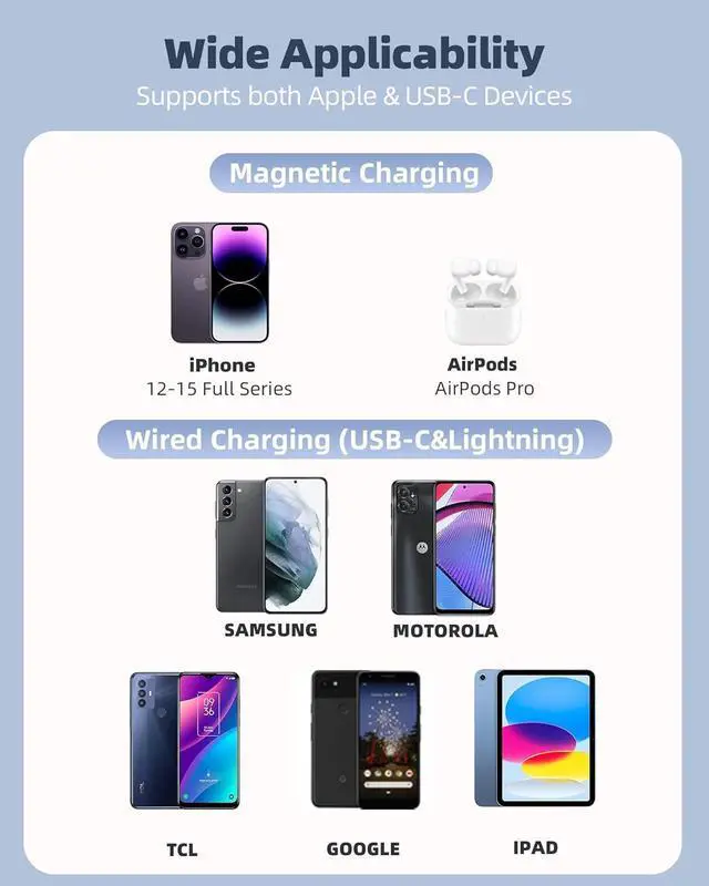 Universal Compatibility: Simultaneously charge various devices, whether you have an iPhone or USB C device, our charger is your one-stop power solution