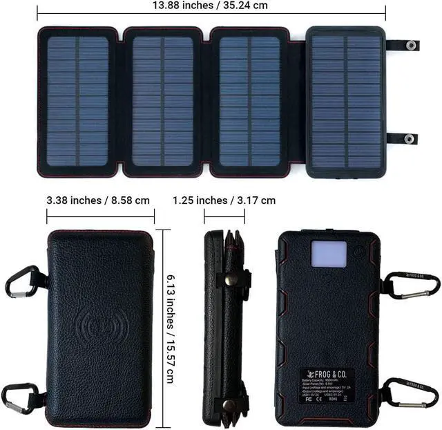 MAGNETIC LEATHER CASE: A leather wallet with waterproof coating inside gives your solar power bank durability, flexibility, and heat resistance. Loops and magnets make it easy to attach to your car or other metal surfaces for easy charging in the sun.