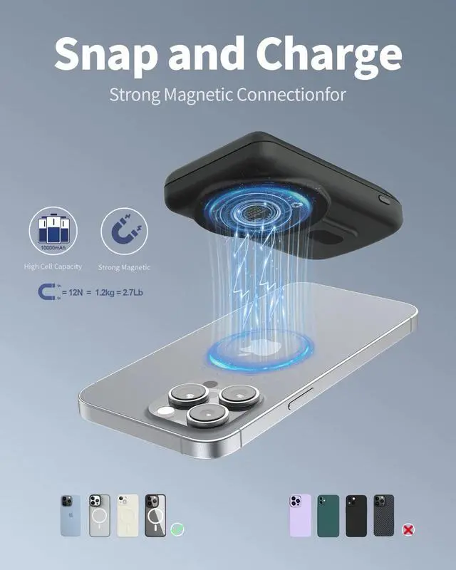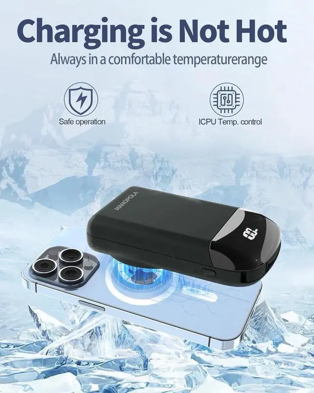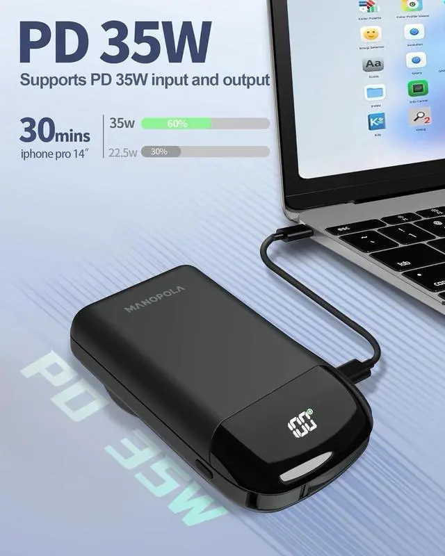 35W Magnetic Wireless Power Bank for iPhone 16/15/14/13/12/Pro/Mini/Pro Max,Mag-Safe Battery Pack,10000mAh Portable Charger with Built-in Fast Charging Cable and USB-C Port
