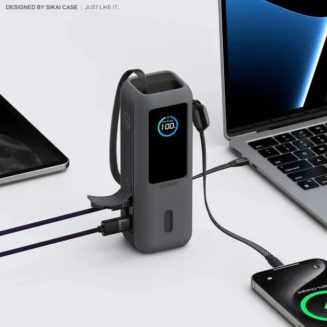 Tailored Protection for Your Anker Laptop Power Bank 165WIntroducing our SIKAI CASE silicone case custom-designed for the Anker Laptop Power Bank 165W, with precise cutouts perfectly matching every detail of your power bank. Whether it' s big display, data transfer ports, or rated information, everything is easily accessible. No more worrying about scratches or wear and tear on your power bank!
