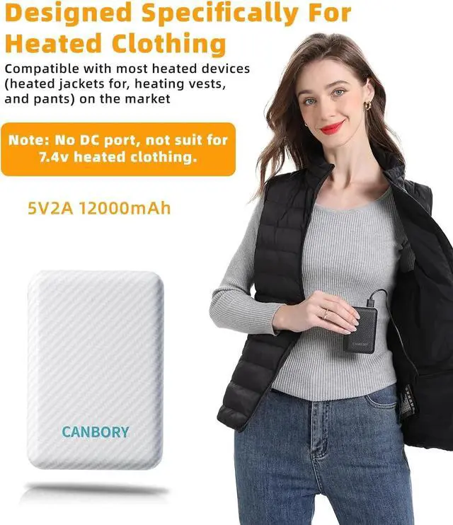 Specially Designed For Heating Vests: Our 5V 2.4A power supply is tailored for heating vests, jackets, and pants, fully optimizing features such as high power, safety, battery life, and size.
