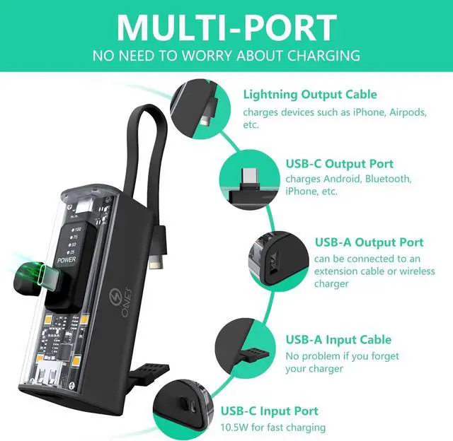 Safety FirstONES power bank comes equipped with advanced safety features, prevent overcharge, over-voltage, over-current and short circuit., ensuring a secure and reliable charging experience every time.