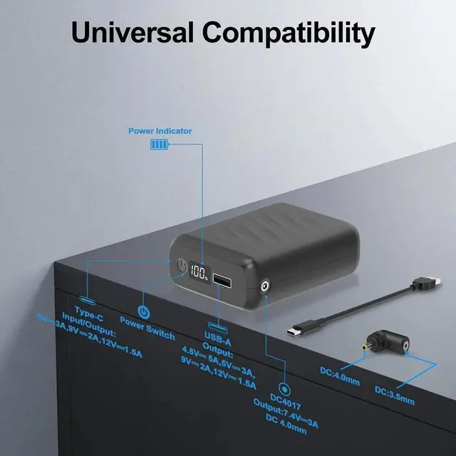 Large Capacity Battery PackThe 20000mAh/77Wh high-capacity battery pack developed specifically for heated clothing gives you up to 5-17 hours of long-lasting warmth. Compatible with all USB 5V heated vests, and most 7.4V DC 4.0 mm/DC 3.5 mm (via adapter) heated jackets. Note that there is no DC 12V output.
