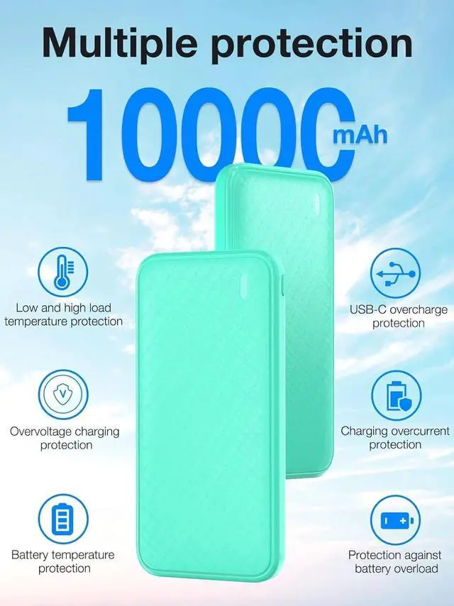 10000mAh Portable Charger 20W Fast Charging Power Bank Battery Pack PD QC 3.0 PowerBank USB C Input & Output for iPhone