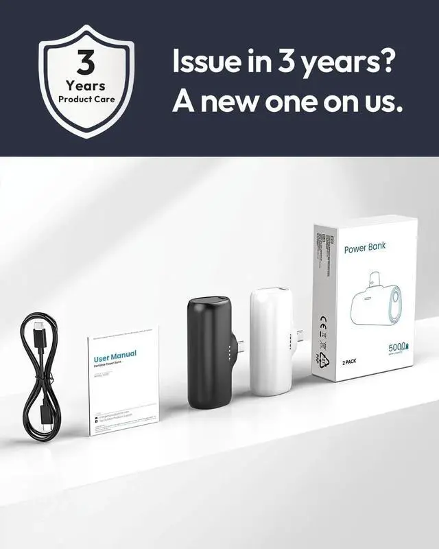 Small Yet PowerfulDespite its small size, the mini portable charger features a 5000mAh capacity that can charge your phone 0.8 - 1.5 times on a full charge, covering your daily charging needs. Its built-in USB-C connector eliminates the need for extra cables, allowing you to easily charge your phone directly from the charger without carrying additional accessories.