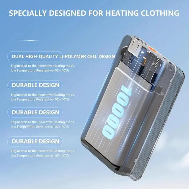 Extended Runtime with 10000mAh Capacity: Backed by a high-capacity 10000mah battery, this heated vest power bank offers 4-8 hours of continuous heat on the lowest setting of heated clothing, perfect for those who need warmth throughout the day.