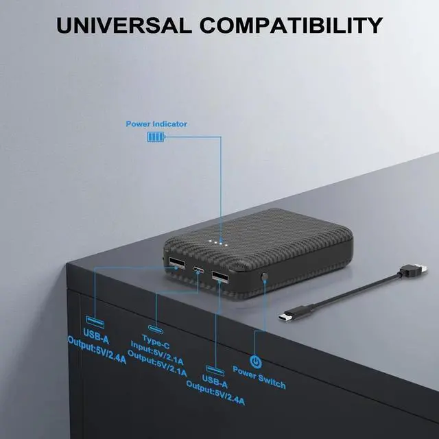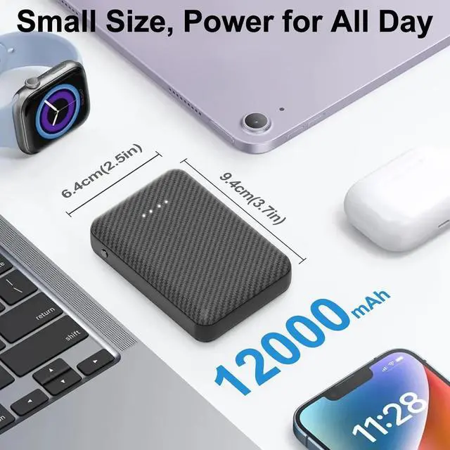 Small Size, Light WeightCompact and lightweight at 7oz/ 198.5 g, with rounded corners for comfortable carrying. Also doubles as a portable phone charger. Can charge iPhone 15 2-3 times, iPAD Mini 1-2 times. This mini power bank is also ideal for on the go and as airplane travel essentials.