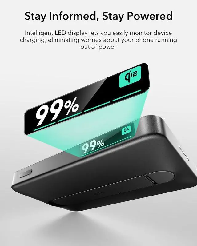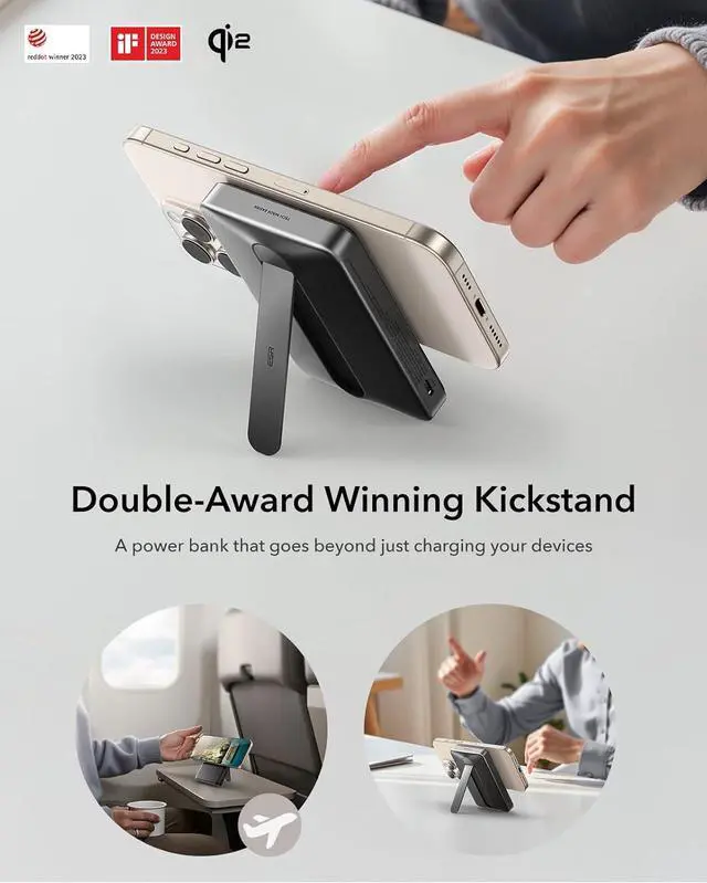 Double Award-Winning Design and Built-in Smart Display: winner of both the IF and Red Dot Awards, this innovative kickstand design offers adjustable angles between 45° and 70° for perfect viewing, along with a built-in smart LED display to monitor the charging process and real-time battery status