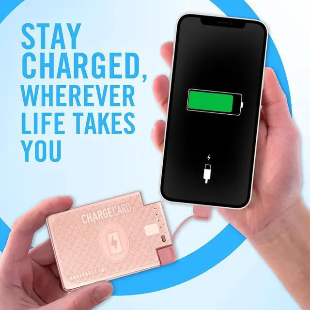 IN YOUR WALLET: No more dead phone anxiety. The ultra-slim ChargeCard fits in any wallet or cardholder, so you' re never caught without a charger. Keep it on you 24/7without even thinking about it