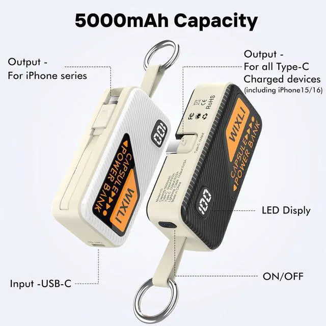 Portable Charger with Foldable USB-C Port: Widely Compatible With iPhone 16/15/16/15 Plus/16/15 Pro/16/15 Pro Max, compatible with Samsung S21, S20 FE, Galaxy A52, Note 20 Ultra, S10 Plus, S10, S10e, Note 9, S9 Plus, S9, Note 8, Galaxy Fold, Flip 3 and Fold 3 Series; compatible with LG G7 ThinQ, V40 ThinQ, V35 ThinQ, Stylo 4, G8, G6, Q6; compatible with Moto G7, G6, G7 Power, G7 Plus, G7 Play, Moto Z2 Play, E5, G6 Plus, Z3 Play etc; compatible with Google Pixel 5A, Pixel 6, Pixel 6 Pro etc; compatible with Pocophone, Oppo, TCL or other Android Type C Phones etc.
