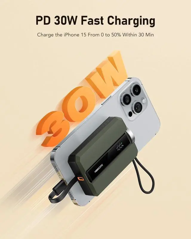 [ Intelligent Safety Protection ] It' s a portable phone charger for travel with a built-in cable. The small portable power bank is certified by UL 2056, CE, RoHS, and FCC. Equipped with intelligent protection measures and advanced fire-resistant materials, it guards against issues such as overcurrent, overvoltage protection, overheating, and overcharging. Safety is always our top priority.