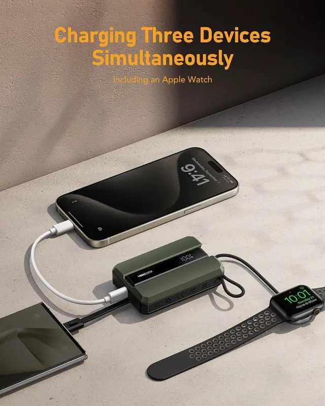 [ Charge Multiple Devices Simultaneously ] The Versatile portable charger power bank with 3 ports can charge Apple Watch, iPhone, Airpods, Macbooks or Android devices at the same time. Ensure uninterrupted productivity and entertainment on the go with this high-capacity, multi-device compatible best portable phone charger.