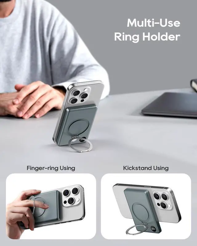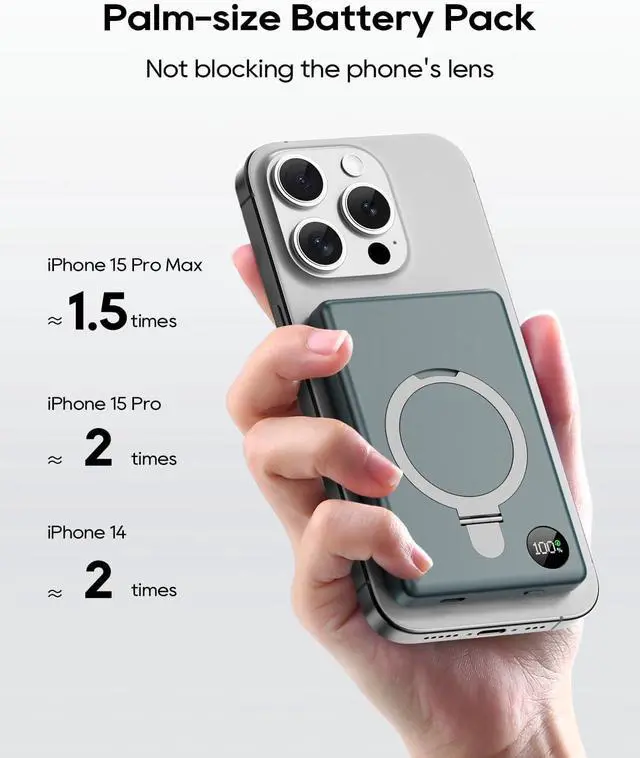 Extremely Compact DesignEquipped with ultra-strong magnets that firmly attach to the back of the iPhone 15 or 14 so you can single-handedly take selfies, make calls, and more. Anyzoo Power Bank features an ultra-slim and lightweight design, embedded with a high-quality Li-polymer electric core. A length of 3.98 * 2.63 * 0.5 inch and weighs just 140g. Really Portable, definitely a MUST for traveling for its compact shape. Wherever you go, charge on the go!