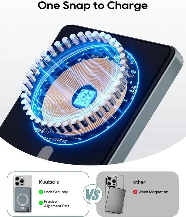 Superior SafetyWireless portable charger has overcharge, overdischarge, overcurrent and short circuit protection to protect the safety of your device. Built-in intelligent control chip and dual-cell solution can automatically identify the charging device, adjust the output current and accurately control the temperature in time to protect the safety of your phone battery.