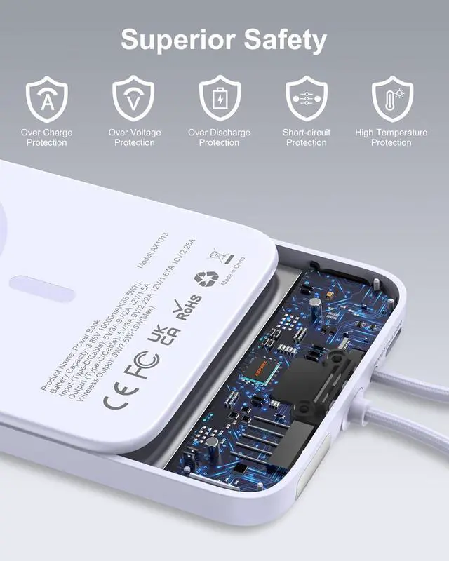Superior Safety: This Portable power bank built-in smart chip and low-temperature ice cores. keep your devices from overcharging, over-current, short circuits and high-temperature protection to protect the safety of your portable charger.